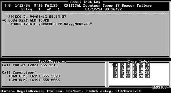 One nice thing about ASCII is the vast amount of equipment that uses it. Many older devices report their alarms exclusively in ASCII. Even modern equipment often has at least one port that supports ASCII to some extent. It may be used on a control CRT or could be present on a printer that is dedicated to event logging.