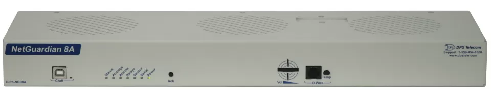 The NetGuardian 8A offers a compact design, high analog capacity, and a few controls and discretes. It comes with 1 internal temp sensor and a D-Wire sensor input that allows you to daisy-chain up to 16 D-Wire sensors.