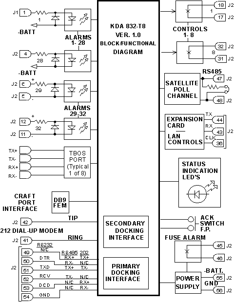 See functional schematic of the KDA 832-T8 Alarm Remote.
